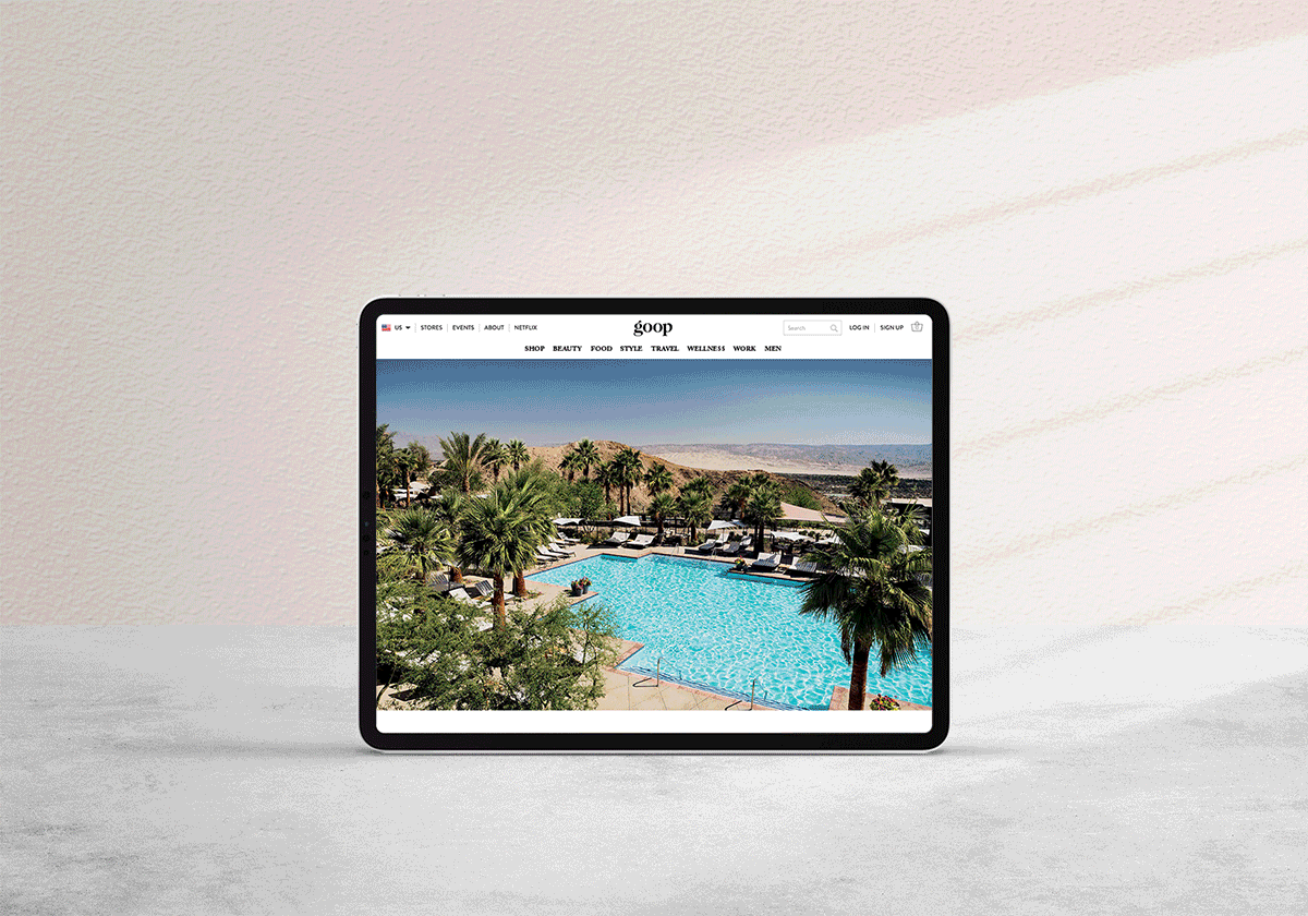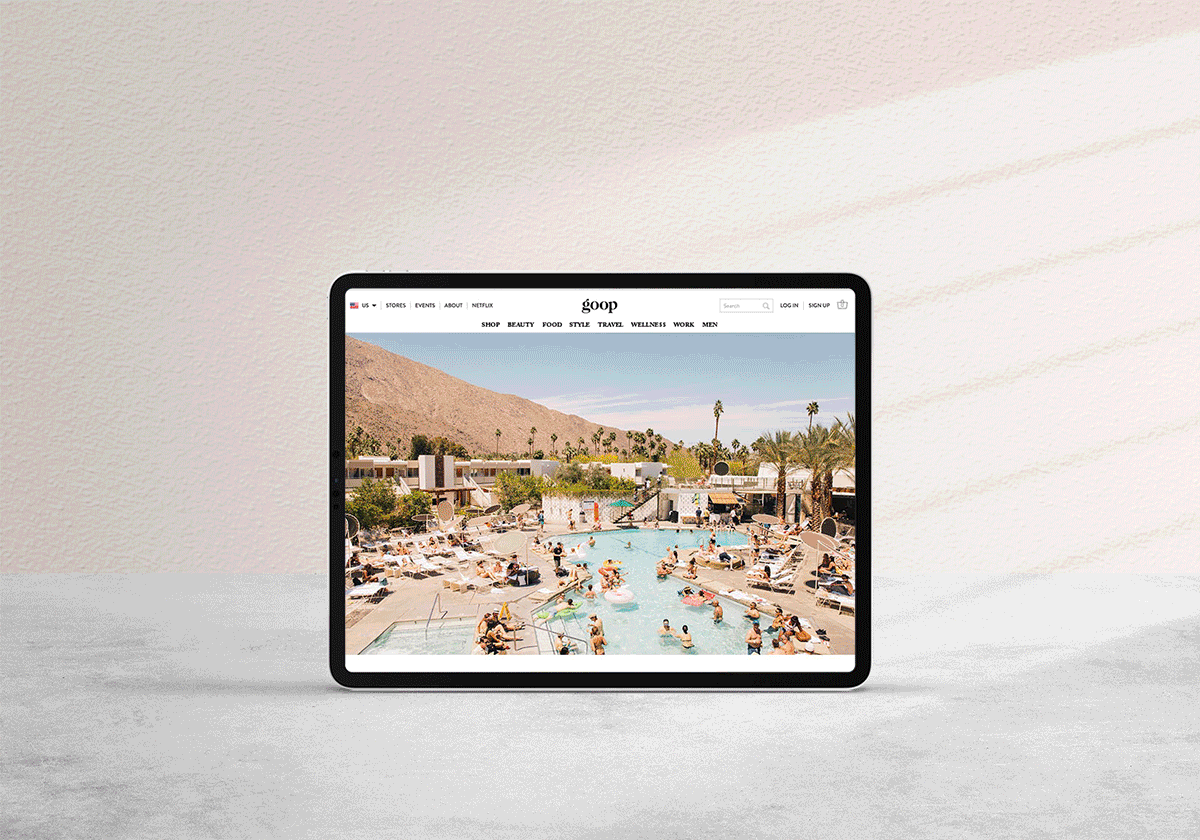 E-mail newsletter design exploration, using various typographic and image compositions while maintaining goop's minimalistic aesthetic.